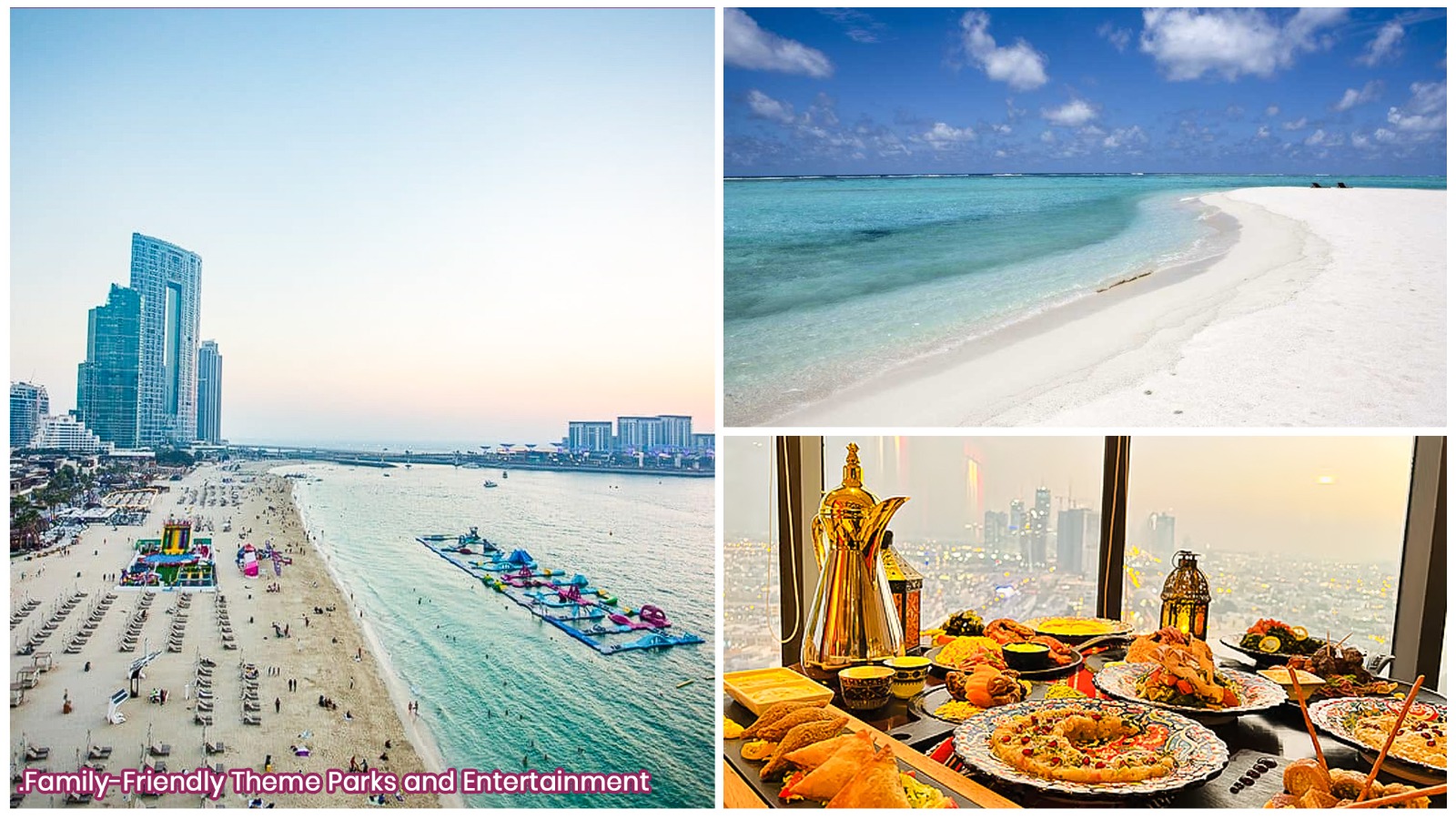 Dubai is highly family-friendly for first-timers. Activities such as Aquaventure Waterpark, Dubai Aquarium, IMG Worlds of Adventure, and Global Village are suitable for children of all ages. There is a children-friendly swimming area at JBR Beach. Families can enjoy cultural performances, desert safari, and dhow cruises with halal food.